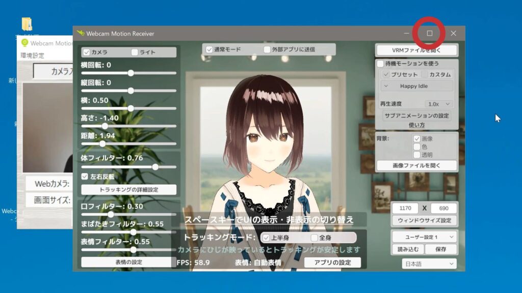 サイズは、アプリ右上の最大化ボタンでも変更できます。