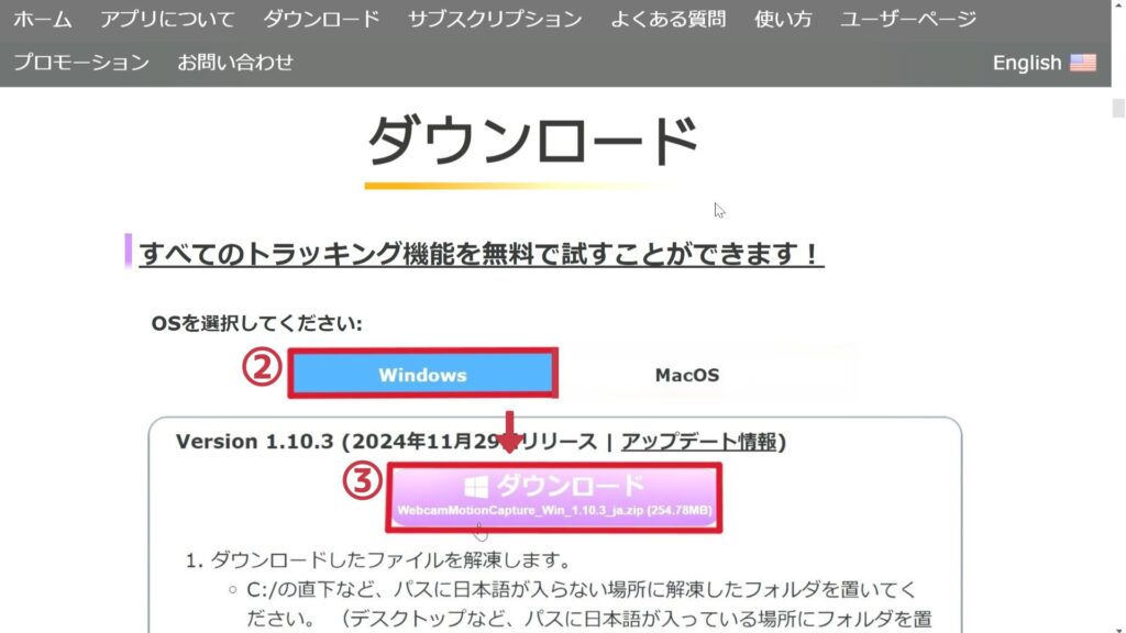 WINDOWS版のダウンロード方法です。