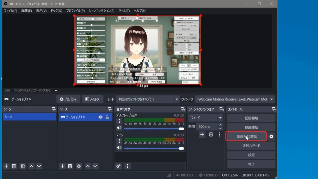 *一回設定すれば、次回以降は「仮想カメラ開始」のボタンを押すだけでOKです。