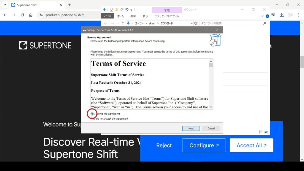 下記のボタンをクリックし、Supertone Shiftのホームページを表示させます。