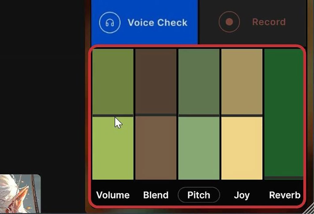 - Blend : キャラクターの声とユーザーの声との合成比率を調整することができます。100に近いほどキャラの声に、0に近いほどユーザーの生声に近くなります。