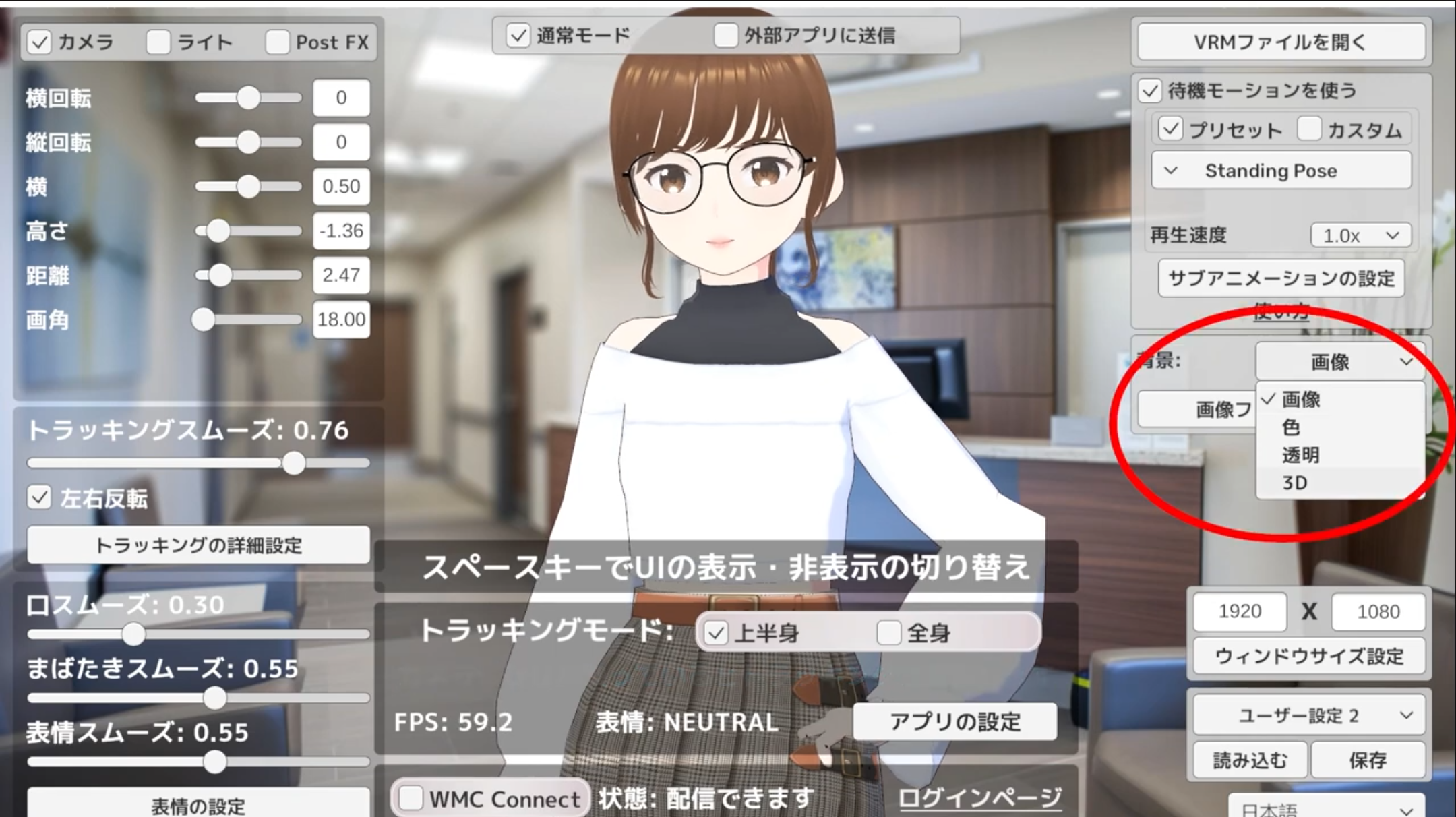 • 真っ暗な背景にキャラクターだけが表示されていれば正しい状態です。